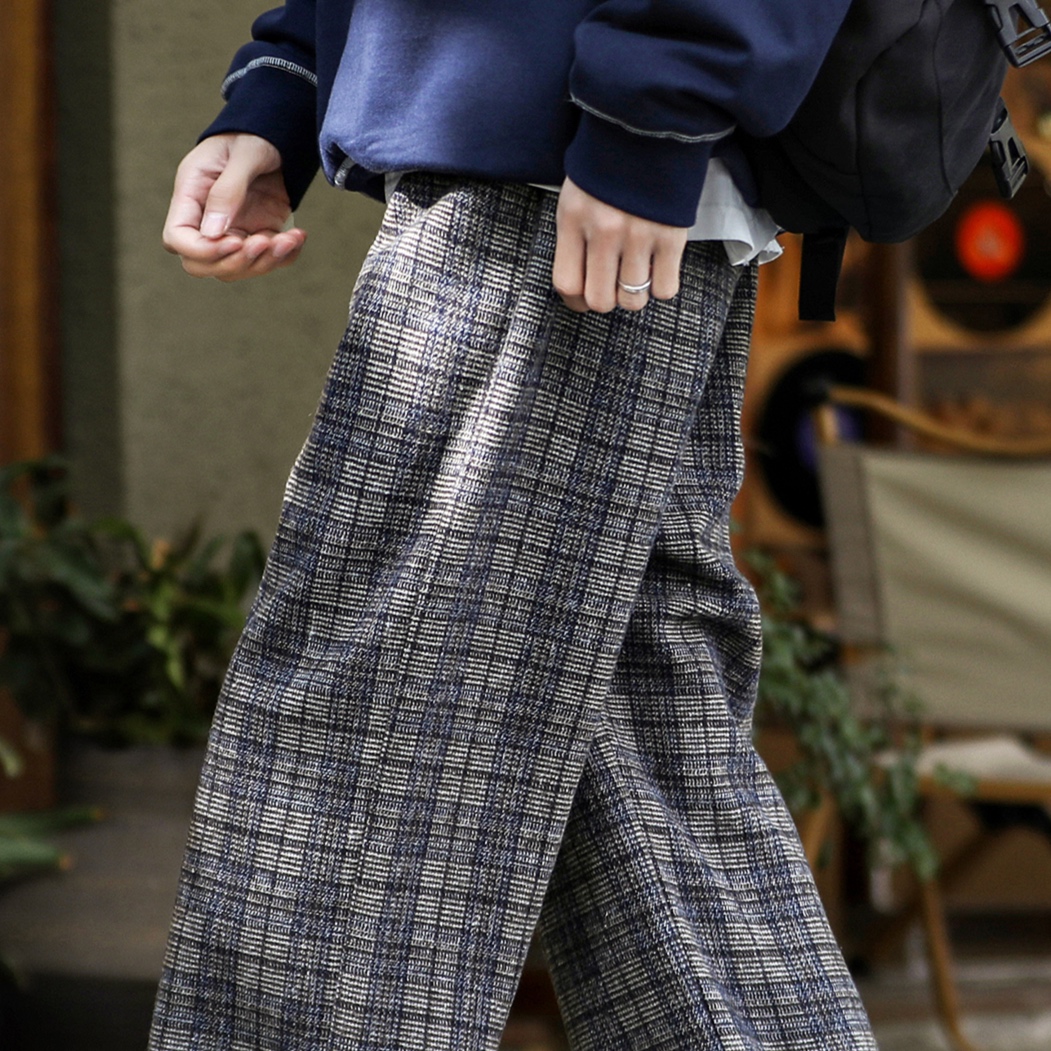 伝統的なチェック柄が落ち着いた印象を与え、どんなコーデにも合わせやすいパンツです。