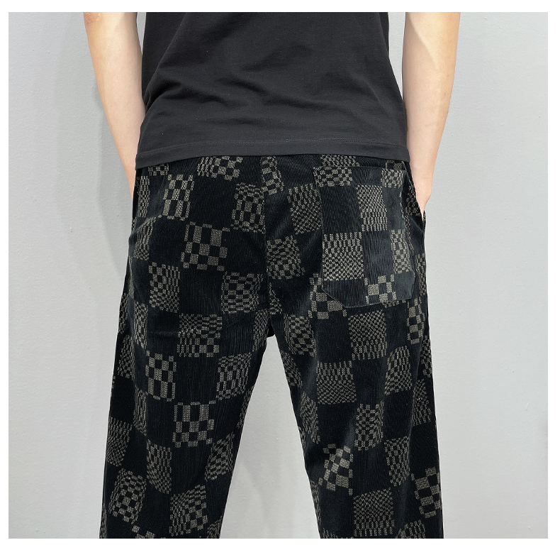 伸縮性のある素材で快適な着用感を実現したチェックパンツです。