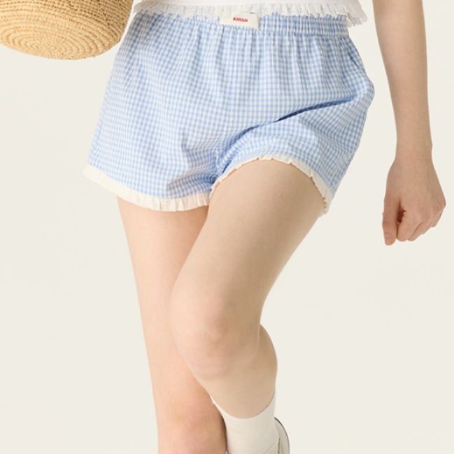 格子柄の爽やかな生地感と可愛らしいワッペンの組み合わせが魅力的なショートパンツに仕上がっています。