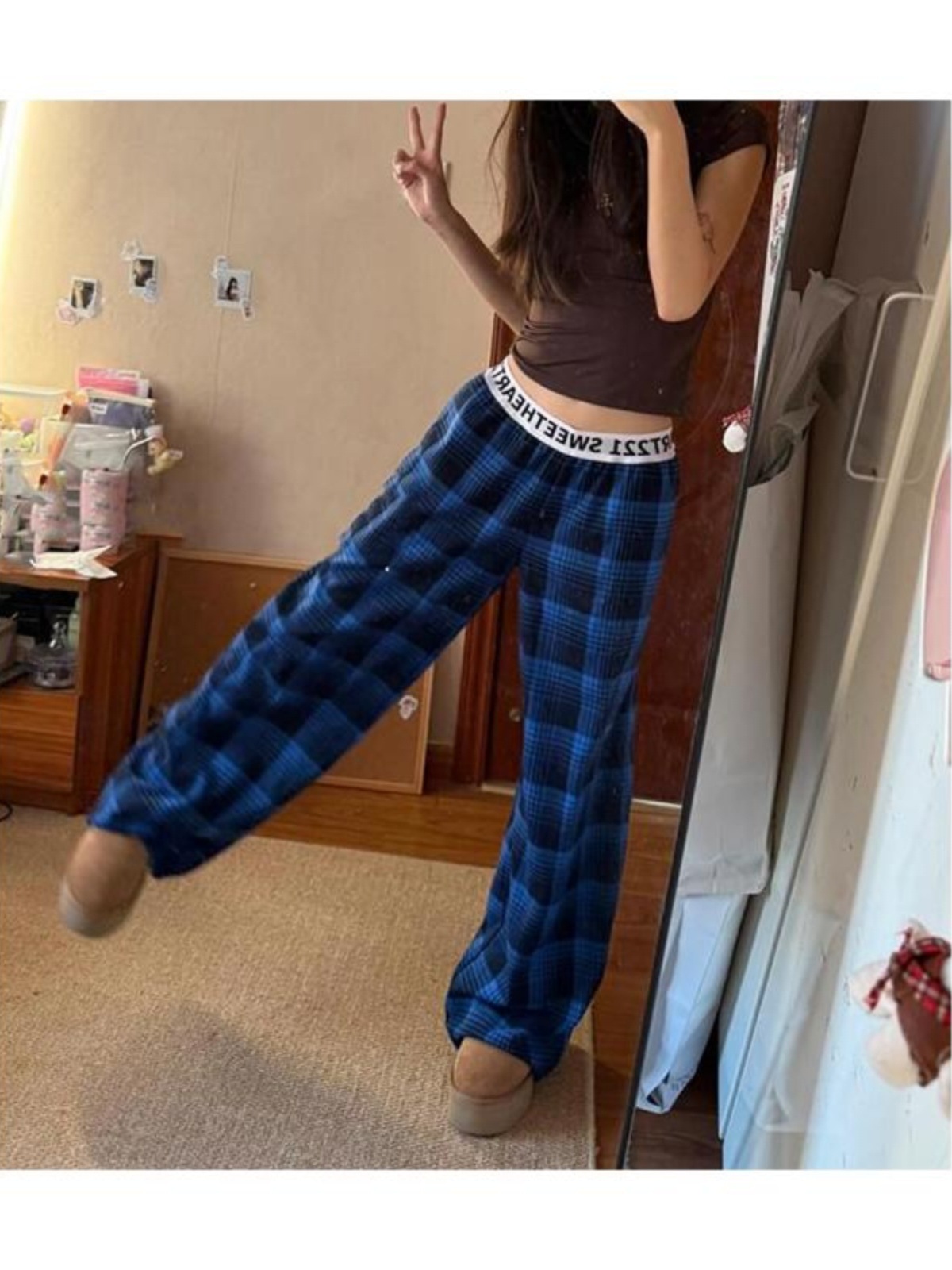 トレンド感のある格子柄が目を引くチェックパンツです。