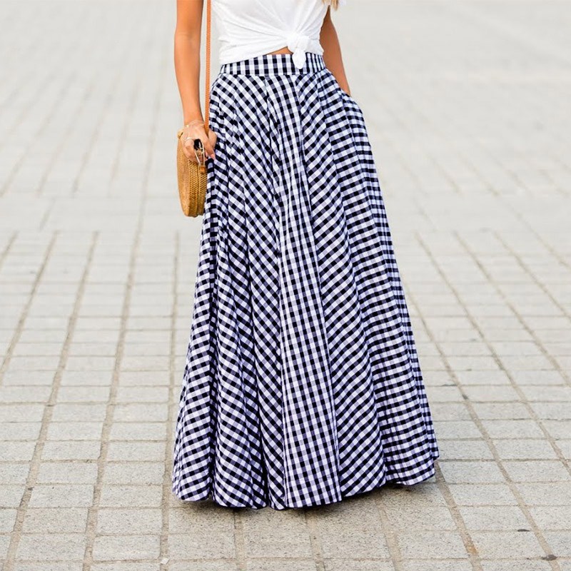 上品なギンガムチェック柄が魅力的なレディースワイドパンツです。