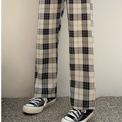 伝統的なタータンチェック柄が魅力的なゆったりシルエットのチェックパンツです。