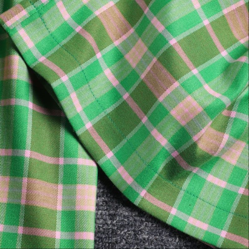 緑を基調とした配色が新鮮で、着こなしに華やかさをプラスします。