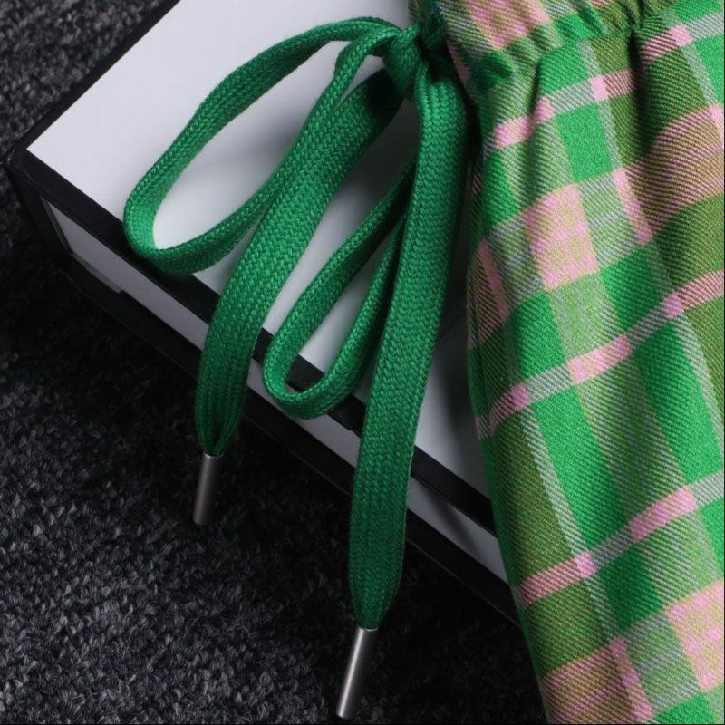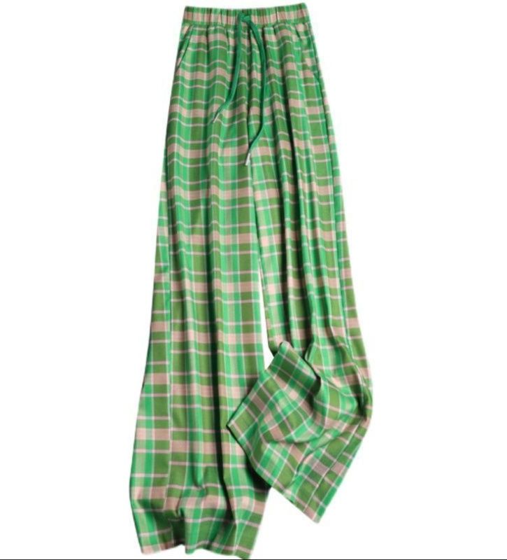 春夏にぴったりな明るい格子柄が特徴的なワイドシルエットのチェックパンツです。